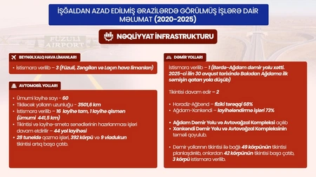 Eyni zamanda, Bərdədən Ağdam istiqamətində dəmiryolunun inşası təmin edilib, Zəngəzur dəhlizinin Azərbaycan hissəsində dəmiryolu xəttinin istismara verilməsi isə ən qıza zamanda mümkün olacaq.