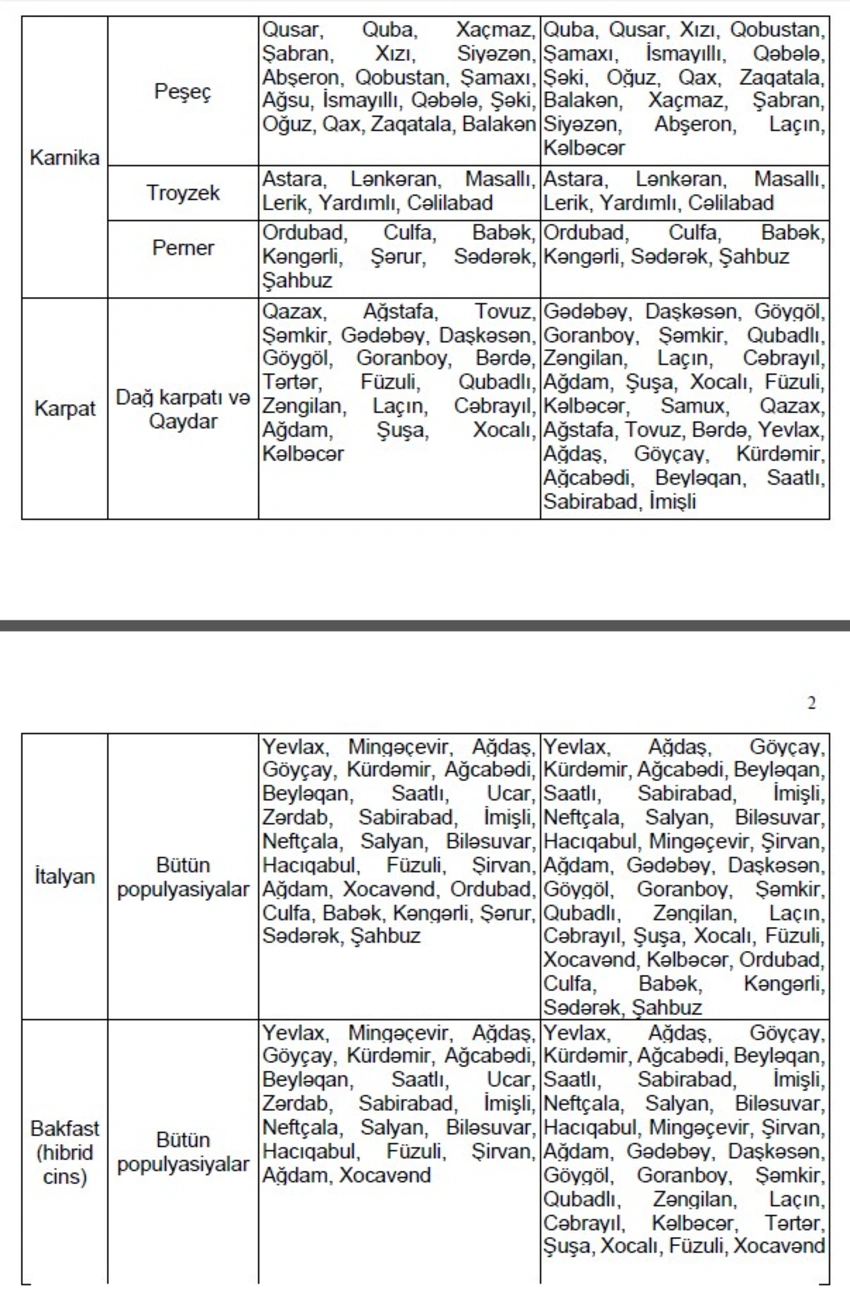Qərara əsasən, yeni baı arısı cinslərinin və populyasiyalarının rayonlaşdırılması qaydası müəyyən edilib.