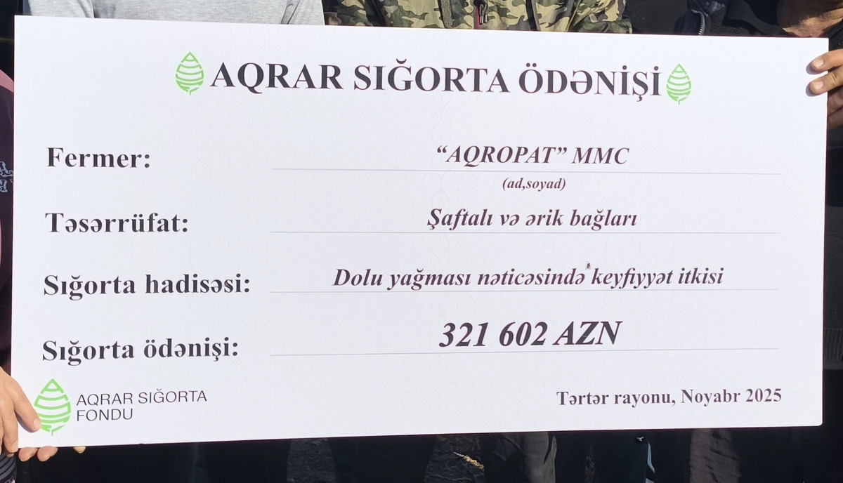 2025-ci ilin noyabr ayında Aqrar Sığorta Fondu tərəfindən ölkədə ilk dəfə olaraq meyvə bağlarında doludan keyfiyyət itkisi üzrə sığorta ödənişi həyata keçirilib.