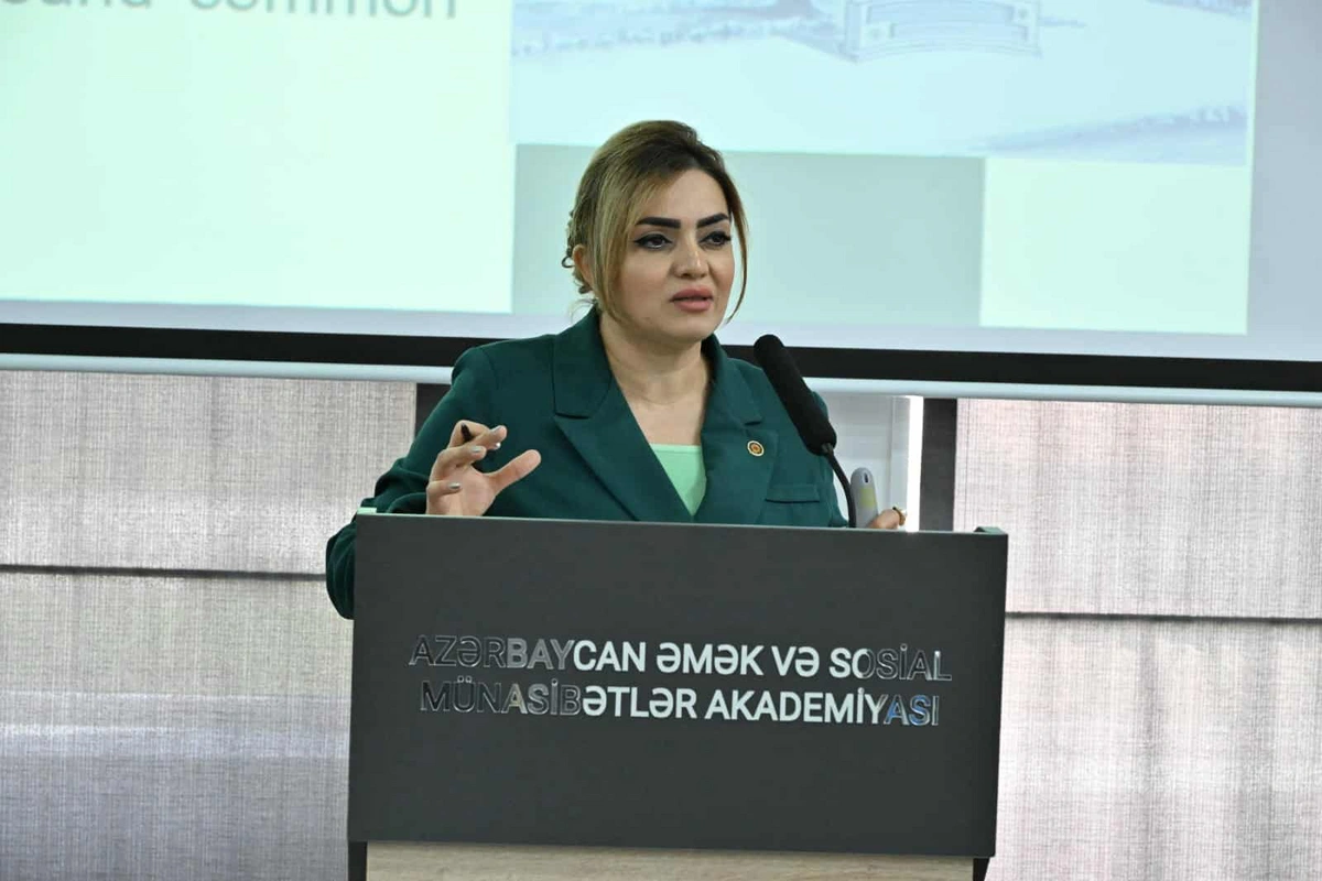 Akademiyanın beynəlxalq əlaqələr üzrə prorektoru Xəyalə Məmmədova ali təhsil müəssisəsi, tədris prosesinin təşkili, tətbiq olunan yeniliklər barədə təqdimatla çıxış edib. Təqdimatda Akademiyanın beynəlxalq əlaqələrinin genişləndirilməsi istiqamətində atılan addımlar, BP, İslam Əməkdaşlıq Təşkilatının Əmək Mərkəzi, York Universiteti, Turin Beynəlxalq Təlim Mərkəzi və digər nüfuzlu qurumlarla əməkdaşlığı vurğulanıb.