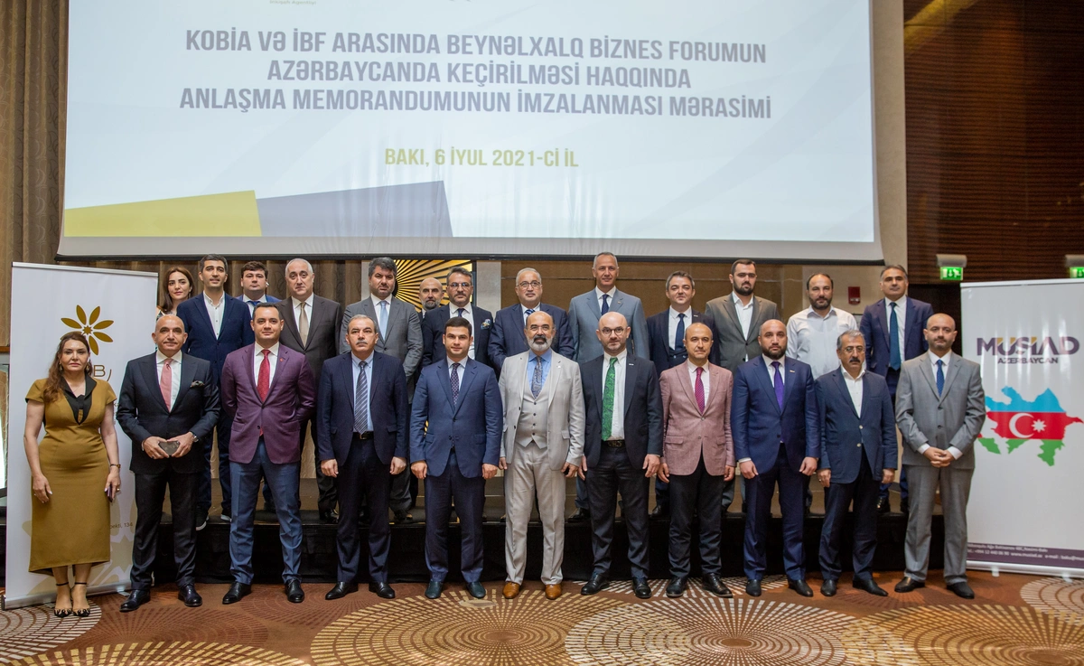 Bu gün iş adamlarının, biznes assosiasiyaların və IBF-in nümayəndələrinin iştirakı ilə KOBİA və Forum arasında 25-ci IBF-in Forumunun Bakıda keçirilməsinə dair Anlaşma Memorandumu imzalanıb. Sənədi KOBİA-nın İdarə Heyətinin sədri Orxan Məmmədov və IBF-in sədri Erol Yarar imzalayıblar.