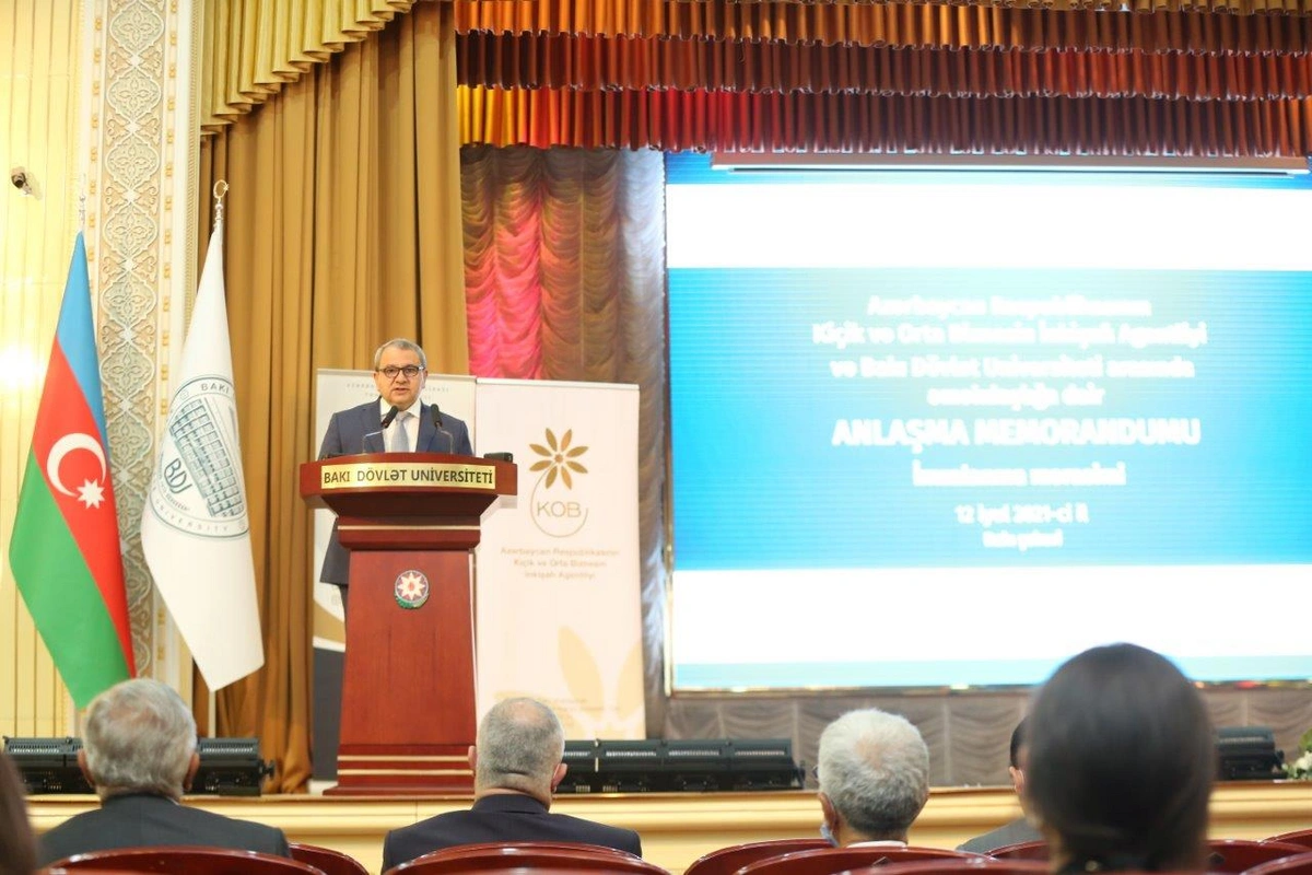 “Biznesin müasir tələblər səviyyəsində təşkil edilməsi və rəqabət qabiliyyətinin artırılması məqsədilə elmi yeniliklərin bizneslərə inteqrasiyası önəmlidir. Artıq qlobal miqyasda bizneslərin tədqiqat mərkəzləri və universitetlərlə sıx əlaqəsinin faydaları məlumdur. Dünyada olduğu kimi ölkəmizdə də müasir bizneslərin yaradılmasında yüksək təhsilli, innovativ düşüncə tərzinə malik və daim yeniliklər axtarışında olan gənclər aparıcı qüvvə hesab olunur. KOBİA və BDU arasında imzalanan sənədin universitetlər və özəl sektor arasında işgüzar əlaqələrin yeni mərhələyə çıxarılması, universitetdə yaradılacaq Biznes İnkubasiya Mərkəzinin universitet və biznes ictimaiyyəti arasında işgüzar körpünün yaradılmasına və gənclərimizin iş həyatına hazırlanmasına öz töhfəsini verəcəyinə inanırıq”, - deyə O. Məmmədov bildirib.