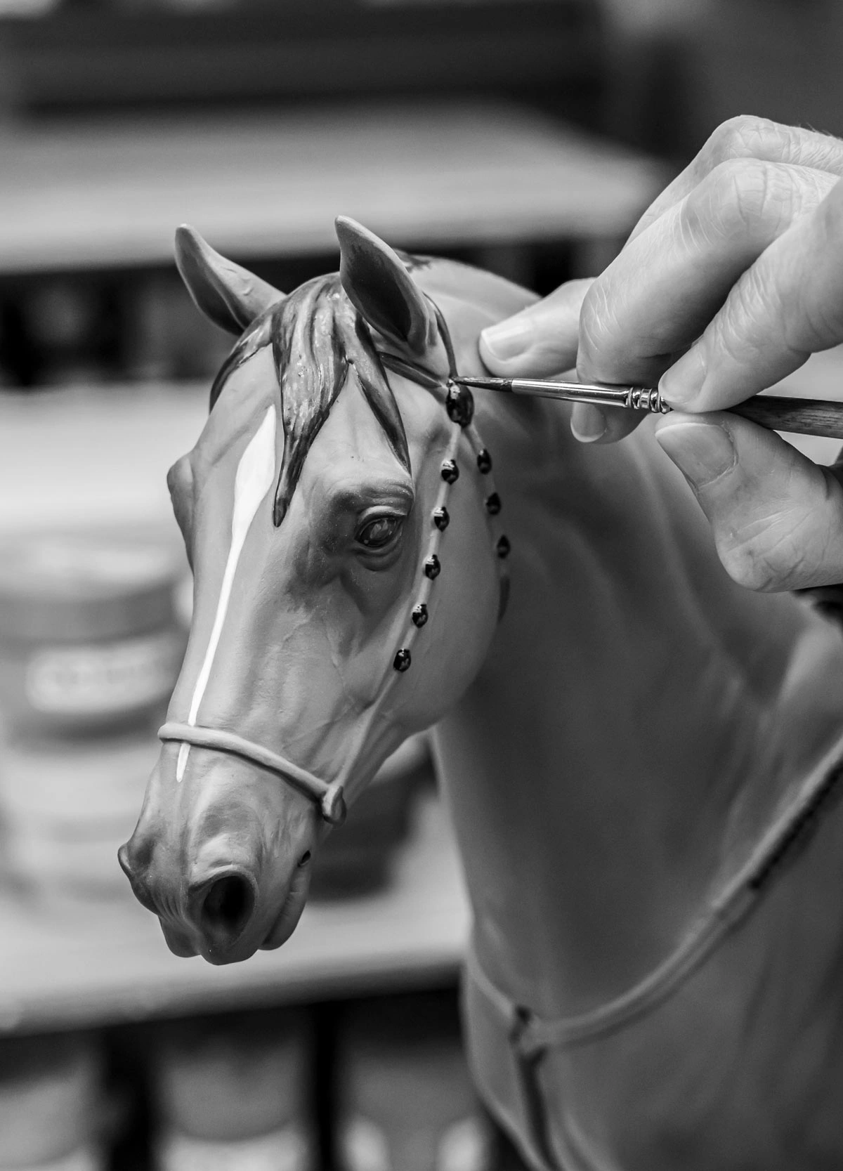 Bu formada Qarabağ atı güc, dözümlülük və nəciblik obrazıdır. "Lladró" rəssamları bu cinsin zirək xarakterini və qədd-qamətini əks etdirməyə çalışıblar. Bu işdə anatomiyanın detallı işlənməsi, profil cizgisinə və baxışın ifadəliliyinə diqqət açıq-aşkar görünür, siluetin dinamikası sezilir. Bu xüsusiyyətlər obrazı tanına bilən və emosional cəhətdən inandırıcı şəklə salır.