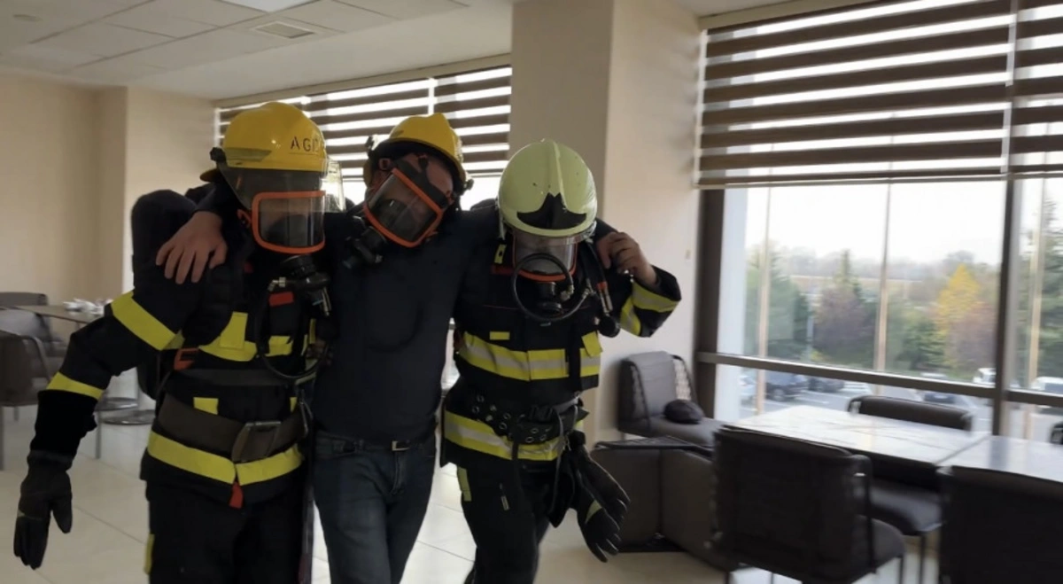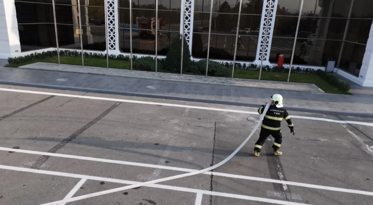 Baş vermiş şərti yanğın yerinə operativ çatan yanğından mühafizə bölmələri obyektin qüvvələri ilə qarşılıqlı fəaliyyətdə işçilərin "təhlükəli ərazidən" təxliyə edilməsi, "yanğın" yerində çevik kəşfiyyatın aparılması və "yanğının söndürülməsi" əməliyyatını yerinə yetiriblər.