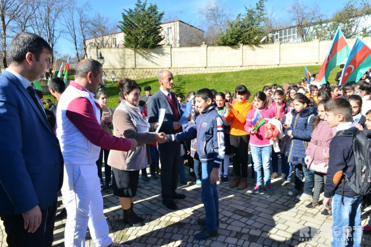 Yürüş iştirakçıları ümummilli lider Heydər Əliyevin abidəsini ziyarət edib, abidənin önündə Azərbaycanın Dövlət Himnini ifa ediblər. Yürüş iştirakçılarına rayon Gənclər və İdman İdarəsinin fəxri fərmanları təqdim edilib.