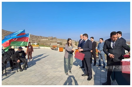 Xocalı rayonuna yola salınan növbəti köç karvanı Xanyurdu kəndinə çatıb, sakinlərə mənzillərin açarları təqdim olunub.
