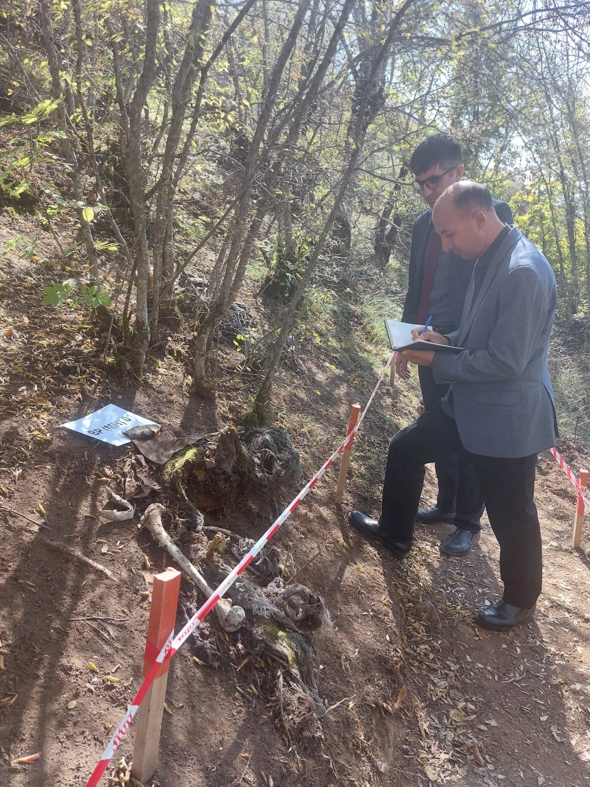 Ombudsman Aparatının əməkdaşları Müqalib Mahmudov və Sevinc Şener Ağdərə rayonunun Ballıqaya kəndi ərazisində aşkarlanan kütləvi məzarlıqda müvafiq araşdırma apararaq faktoloji materiallar toplayıb.