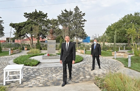 Dövlət başçısı məşhur neft milyonçusu və görkəmli mesenat Murtuza Muxtarovun parkdakı büstünün önünə gül dəstəsi qoyub.