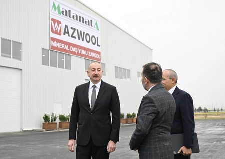Azərbaycan Prezidenti İlham Əliyev Bakının Qaradağ rayonunda "Matanat-A" şirkətinin "AZWOOL" mineral daş yunu zavodunun açılışında iştirak edib.