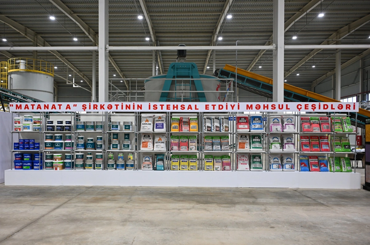 Prezident İlham Əliyevə əvvəlcə əsası 2000-ci ildə qoyulan "Matanat-A" şirkəti barədə məlumat verildi. İnşaat materiallarının istehsalı sektorunda 25 ildir fəaliyyət göstərən şirkətin tərkibinə "Matanat A" Quru İnşaat Qarışıqları, AĞDAĞ gipskarton və gips əsaslı məhsulların istehsalı, AZERLİME Əhəng, Avadanlıq və dəzgahların istehsalı və ELBERG maşınqayırma zavodları daxildir. Şirkətin müəssisələrində ümumilikdə 1000-ə yaxın iş yeri yaradılıb.