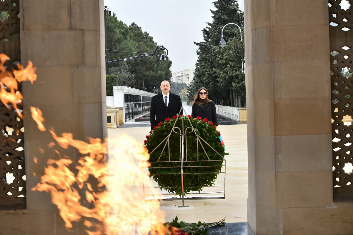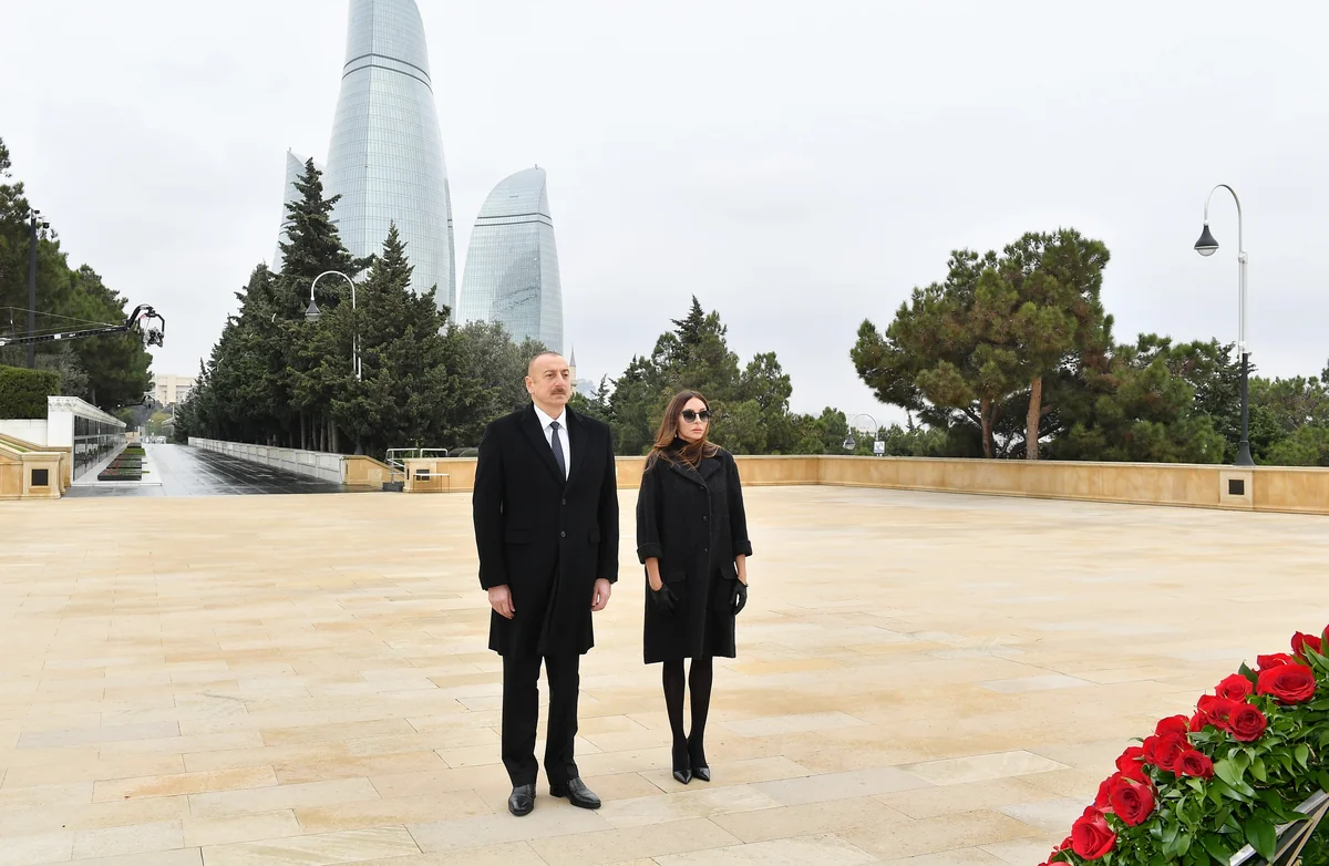 "Report"un xəbərinə görə, dövlət başçısı “Əbədi məşəl” abidəsinin önünə əklil, birinci xanım Mehriban Əliyeva gül dəstəsi qoyublar.