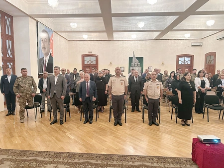 Əvvəl Ümummilli Lider Heydər Əliyevin, eləcə də Azərbaycanın müstəqilliyi, ərazi bütövlüyü və suverenliyi uğrunda şəhid olanların xatirəsi bir dəqiqəlik sükutla yad edilib, Azərbaycan Dövlət Himni səsləndirilib.