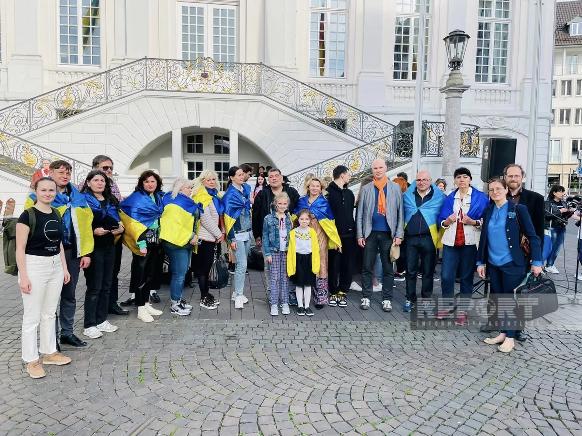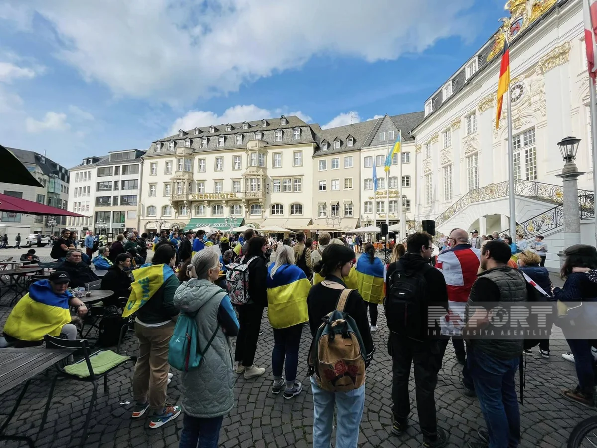 “Report”un Avropa bürosunun məlumatına görə, Şimali Reyn Vestfaliya əyalətinin Bonn şəhərində keçirilən aksiyaya müharibədən əvvəl Ukraynada yaşayan milliyyətcə gürcü və azərbaycanlılar da qatılıblar.