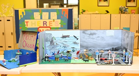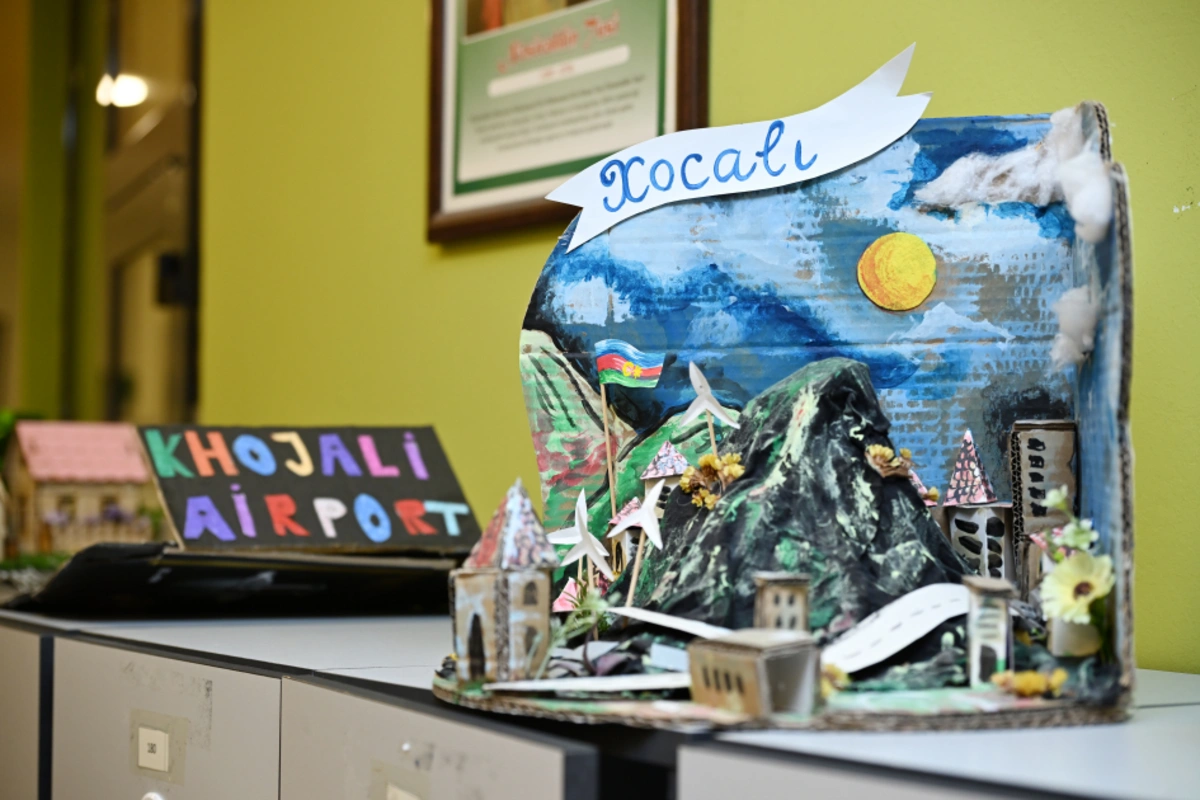 Əvvəlcə Leyla Əliyeva məktəblilərin ətraf mühit problemlərinə, onun həlli yollarına, təbiətin qorunmasına dair ideyalarını əks etdirən əl işlərindən ibarət sərgiyə baxış keçirib.