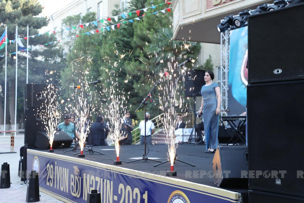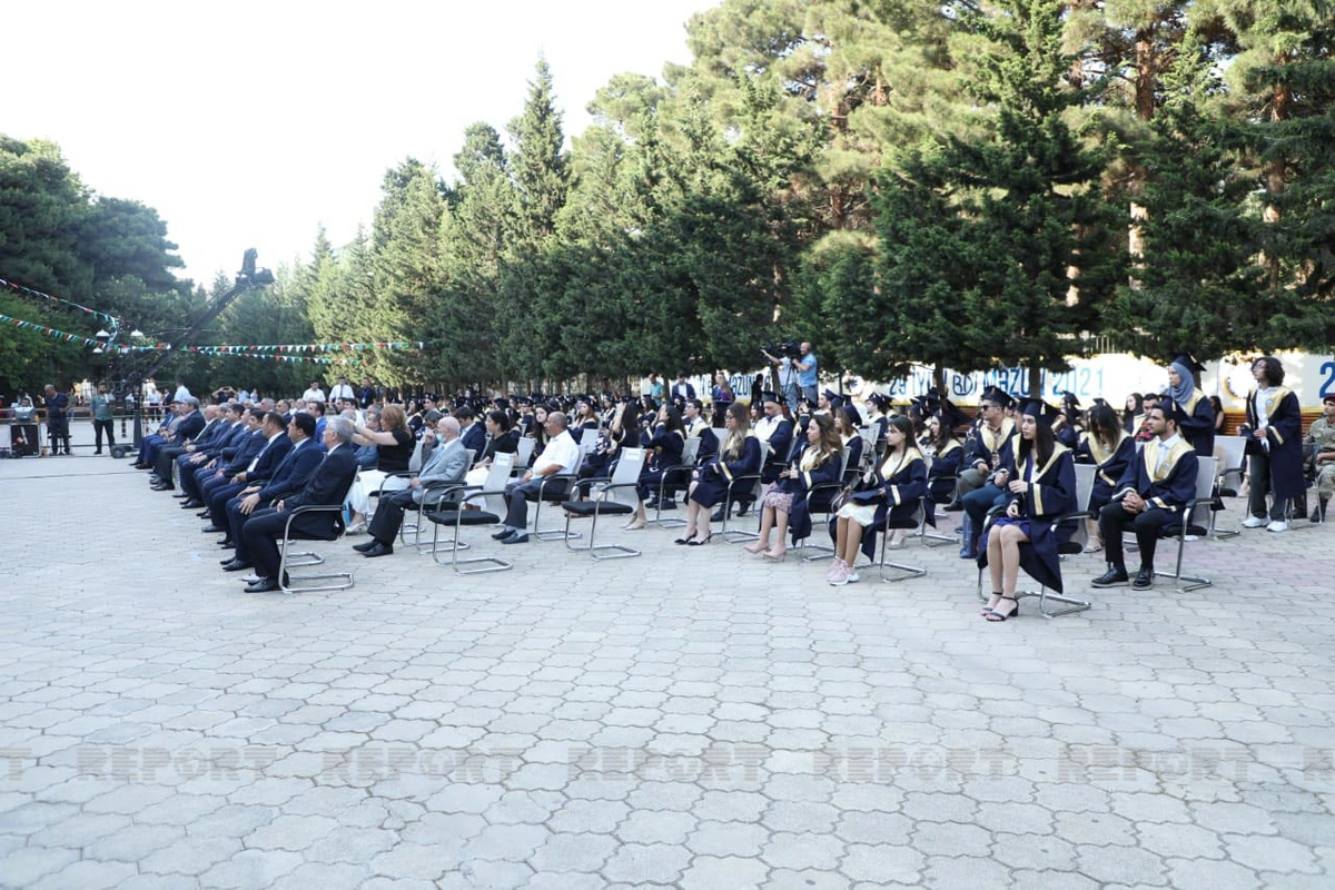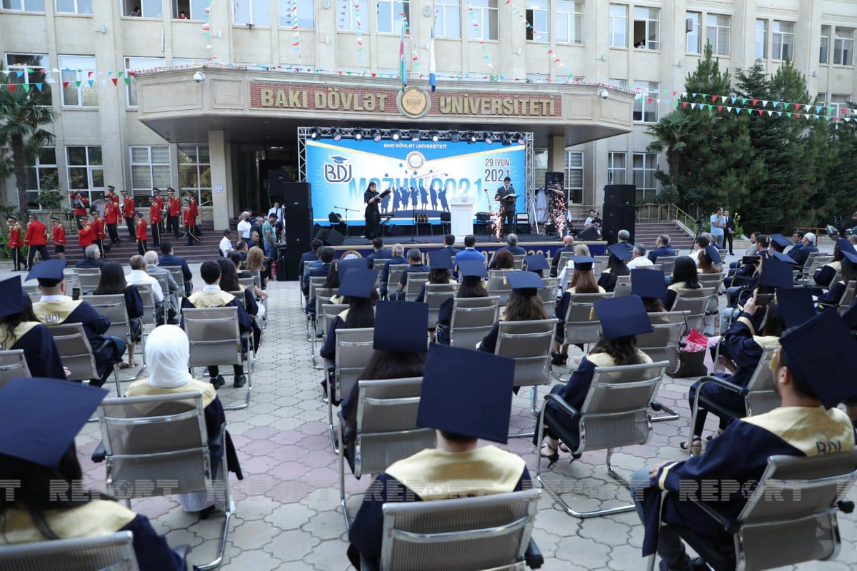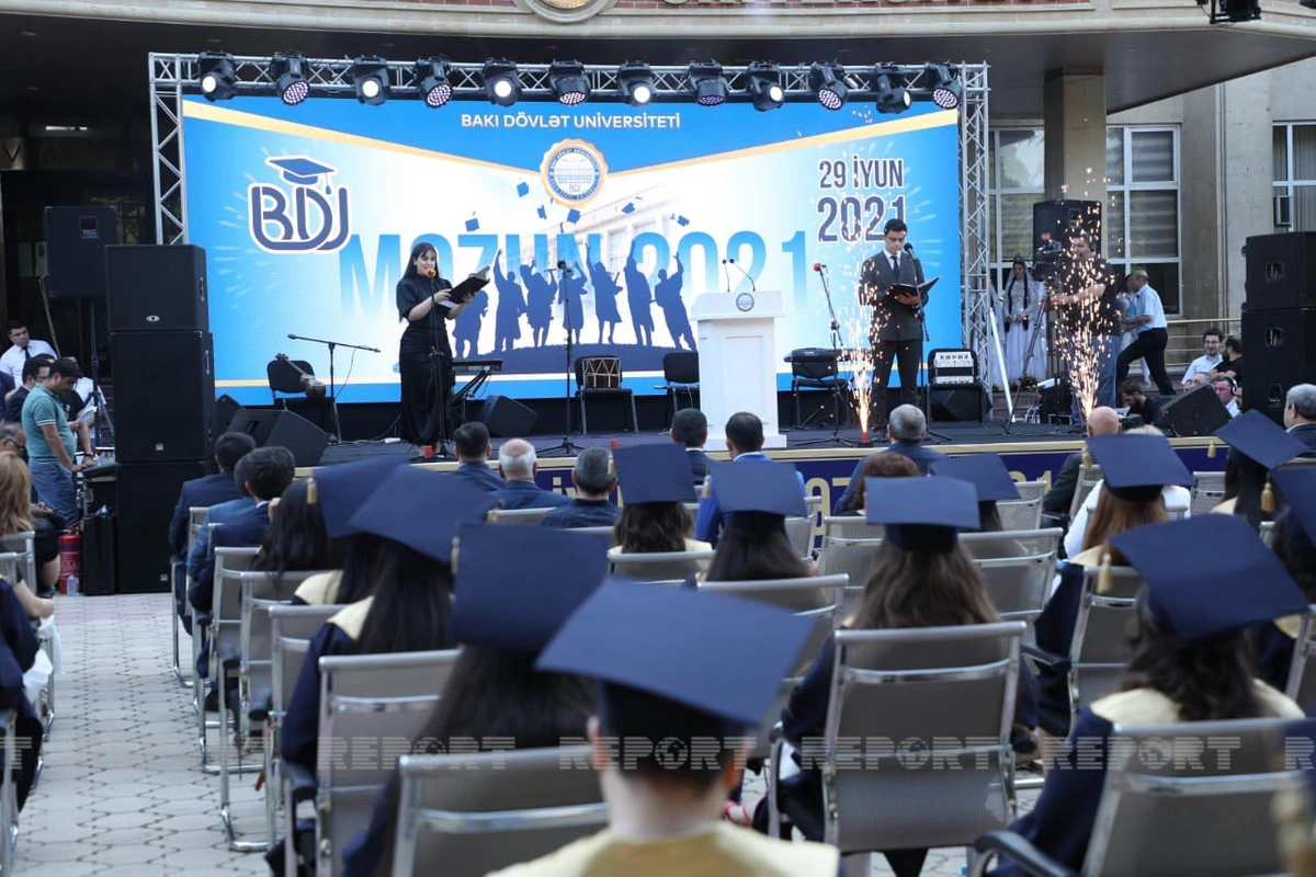Mərasimdə çıxış edən BDU-nun rektoru Elçin Babayev 44 günlük Vətən müharibəsində Prezident İlham Əliyevin rəhbərliyi ilə rəşadətli ordumuz tərəfindən qazanılan şanlı Qələbədən söz açıb. O, xalq olaraq 30 ilə yaxın işğal altında olan torpaqlarımızı azad etməklə tarixi zəfərə imza atdığımızı söyləyib və tələbələri zəfər ilinin məzunları olması münasibəti ilə təbrik edib.