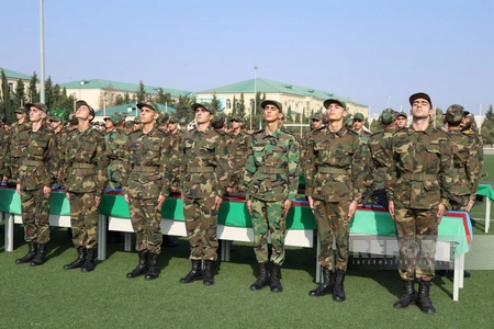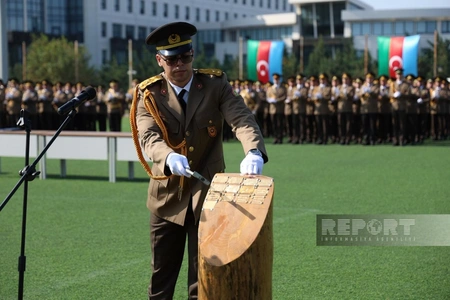 Daha sonra Fövqəladə Hallar Nazirliyinin Akademiyasına yeni qəbul olmuş kursantlar hərbi and içiblər.