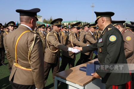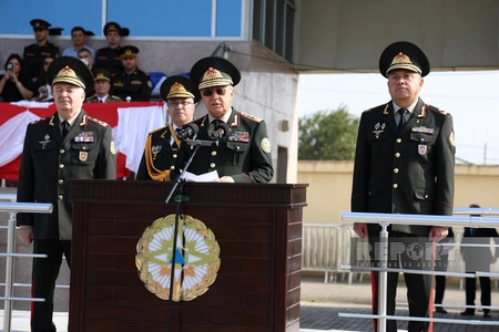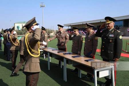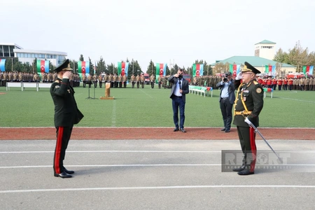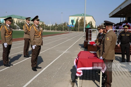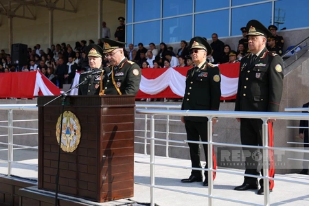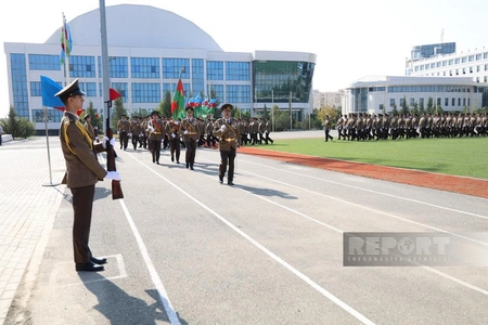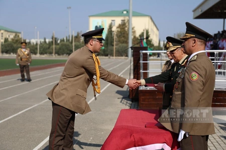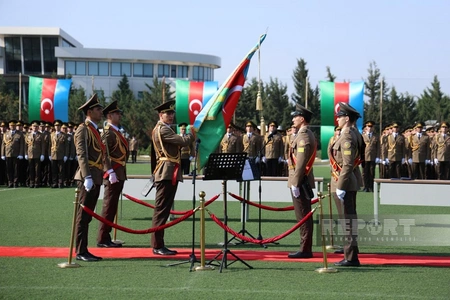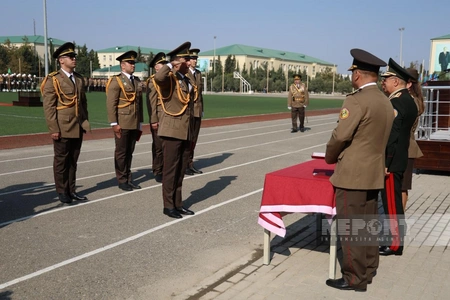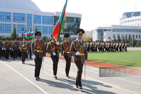 Məzunlar Akademiyanın bayrağı ilə vidalaşaraq onu IV kurs kursantlarına təhvil veriblər.