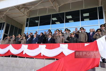 Fövqəladə Hallar Nazirliyinin Akademiyasının bayrağı altında şəxsi heyətin təntənəli keçidi ilə mərasim başa çatıb.
