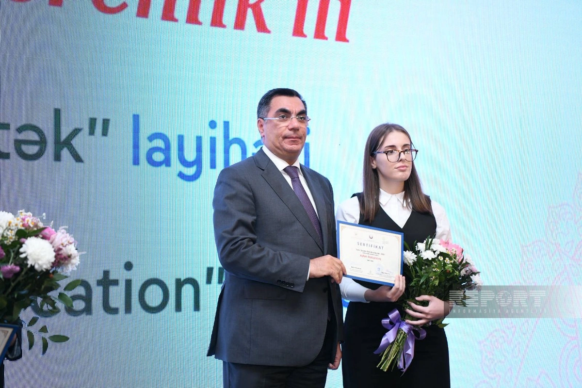 "Report" xəbər verir ki, tədbirdə Ailə, Qadın və Uşaq Problemləri üzrə Dövlət Komitəsinin sədri Bahar Muradova, elm və təhsil naziri Emin Əmrullayev, Təhsil İnkişaf Fondunun İdarə Heyəti sədrinin vəzifələrini müvəqqəti icra edən İlqar Bayramlı və qonaqlar iştirak edib.