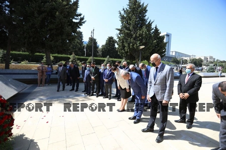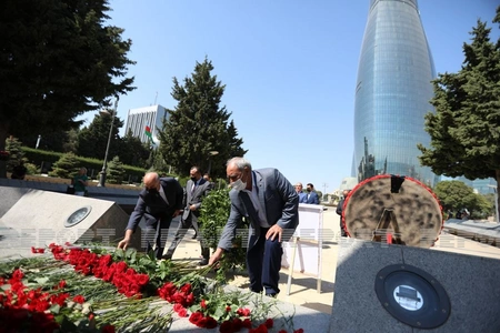 They paid tribute to the memory of the heroic Azerbaijani and Turkish soldiers martyred for the freedom of Baku and laid flowers at the monument to the Turkish Martyrs.