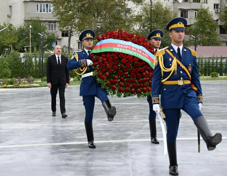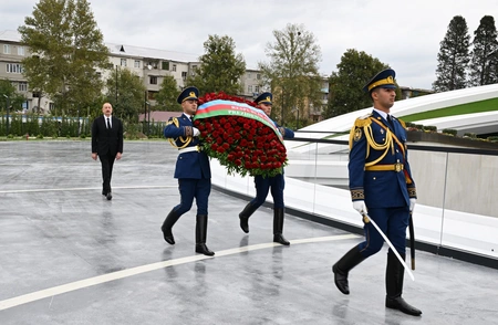 On September 27, President of the Republic of Azerbaijan Ilham Aliyev observed a minute of silence at 12:00 at the Ganja Memorial Complex to honor the memory of the martyrs of the Patriotic War on Remembrance Day, Report informs via AZERTAC.