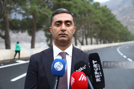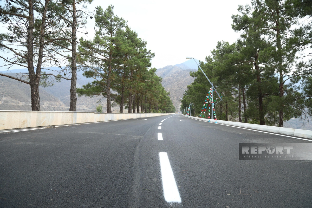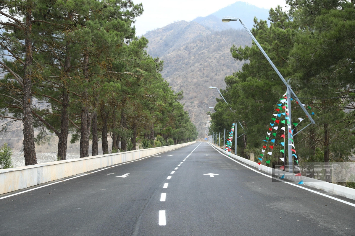 Mammadov stated that following the reconstruction of the road leading to Umudlu village in the Aghdara district, essential measures were implemented to ensure smooth and safe traffic flow: "In accordance with the presidential decree signed last year, the State Road Agency carried out the reconstruction of the road from the Sarsang reservoir to Umudlu village in Aghdara district. The two-lane road, classified as the fourth technical category, stretches 9.4 km, with traffic lanes measuring 6 meters in width."