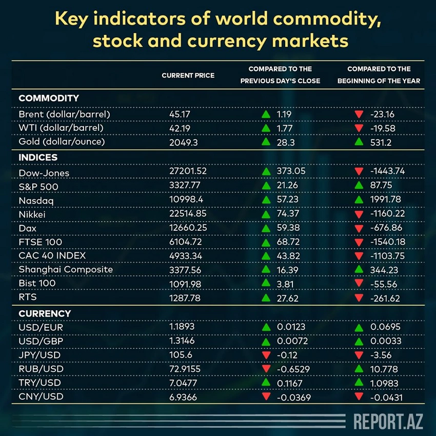 Key indicators of world commodity, stock and currency markets (07.08.2020)