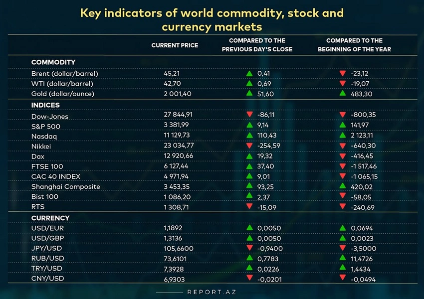 Key indicators of world commodity, stock and currency markets (18.08.2020)