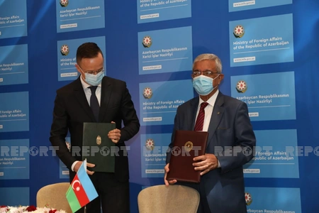 ADA University Rector Hafiz Pashayev and Minister of Foreign Affairs and Trade of Hungary Peter Szijjarto signed a document during the Hungarian minister's working visit.