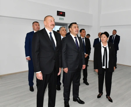 Ilham Aliyev and Sadyr Japarov attend opening of school No. 103 named after Nizami Ganjavi