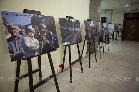 A stand in memory of the fallen heroes has been set up in front of the Azerbaijani embassy.