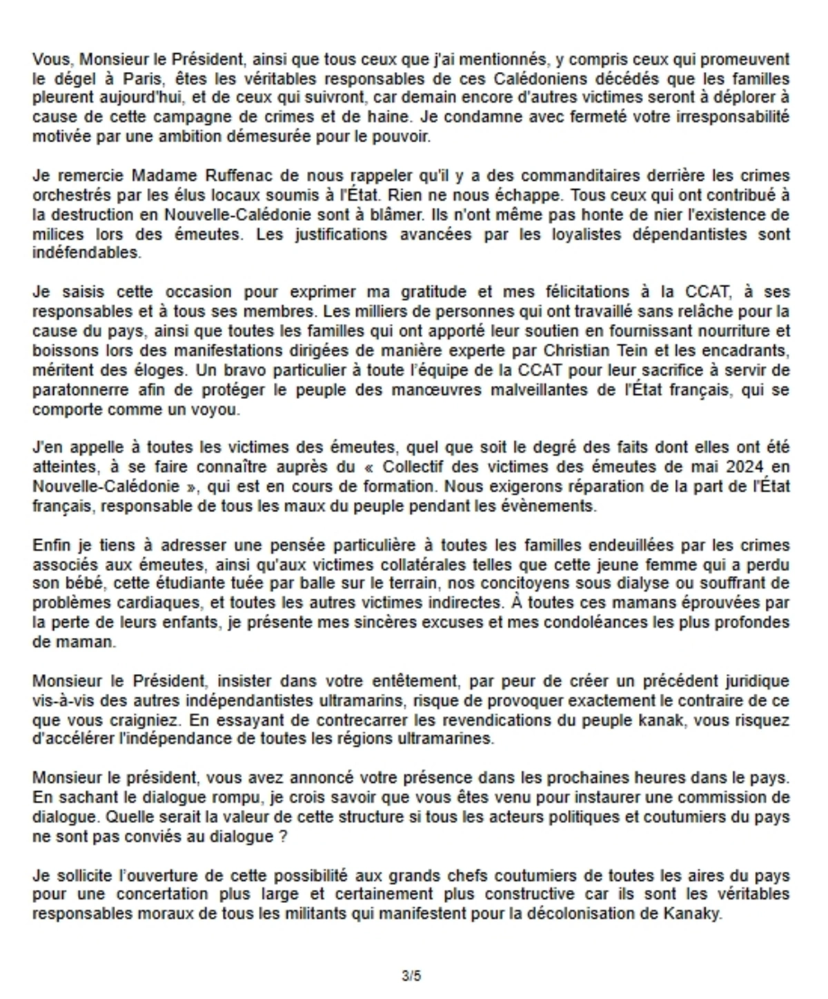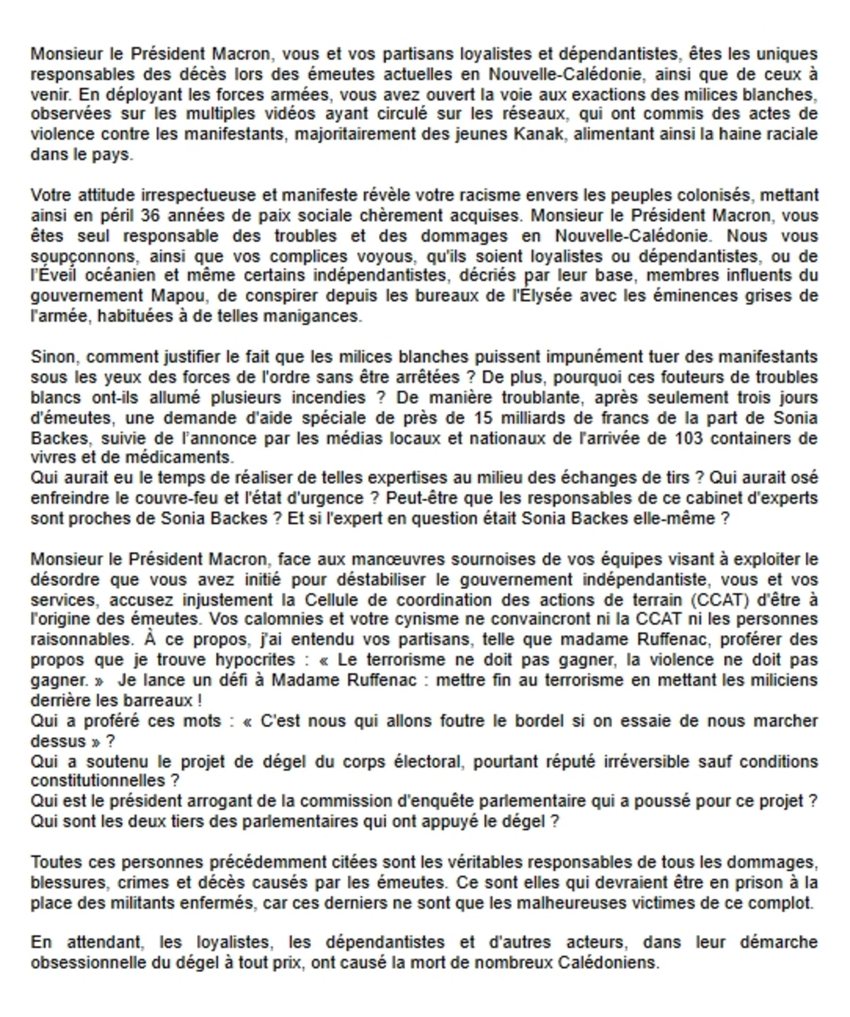 She said that France and especially Macron are responsible for the tragedy in New Caledonia, in particular the murdered Kanaks.