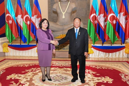 Speaker of the Milli Majlis (parliament) Sahiba Gafarova met with the President of the National Assembly of the Kingdom of Cambodia Akka Moha Ponhea Chakri Heng Samrin during her official visit to the Kingdom of Cambodia, Report informs, citing the Press and Public Relations Department of the Milli Majlis.