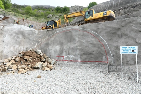Construction works on the reconstruction project of the Khankandi-Shusha-Lachin highway are ongoing. The total length of the highway is 34 kilometers. The width of the soil bed on the second technical grade road is 15 meters, and the width of each lane is 3.75 meters.