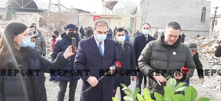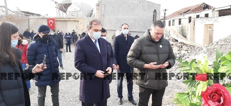 According to the Western Center of Report, the Russian guest visited the residential areas destroyed by the Armenian missile strikes.
