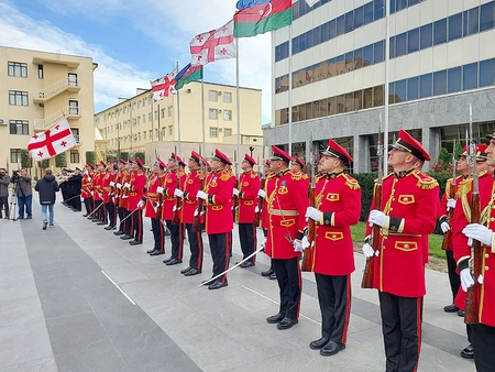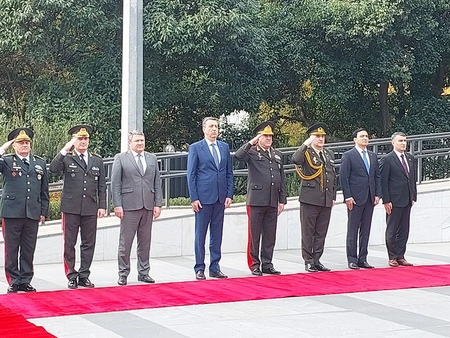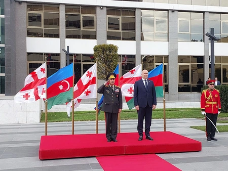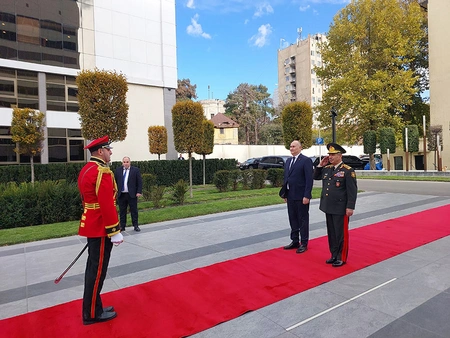 An official welcoming ceremony was organized at the Ministry of Defense of Georgia. Following the protocol, the defense ministers passed in front of the guard of honor, and the national anthems of both countries were played accompanied by a military band.