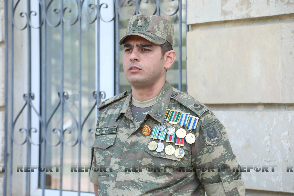 Ahmadov said he was wounded during the war: "On the night of September 27, we were ordered to prevent a provocation committed by the enemy. We attacked in the direction of Sugovushan. On September 30, I was wounded by a hand grenade thrown by Armenians while preventing a counterattack of the enemy. I was evacuated and had surgery. The doctors told me they could not remove the shrapnel from my neck. One day after the surgery, I went back to the war zone. I couldn't stay there since we have been patient for 30 years, and our patience is over. We had to return and liberate our lands from the enemy occupation. Thank God we won. The only wish of me and my comrades-in-arms was not to be left unfinished but to return to the lands we had longed for 30 years. We greeted the victory with tears. It is said that men do not cry. But those who live those moments know. We shed tears of joy and sorrow. There are, of course, losses if there is a war. But the main thing is that today we took revenge on them and liberated our lands from the enemy. Today, each of us openly and proudly tells the whole world, "Karabakh is ours, Karabakh is Azerbaijan!". Not an inch of our land will we give to anyone. We, the sons of Azerbaijan and the next generation after us, are always ready to sacrifice our lives and blood for our lands. Let me mention one point here. My son's name is Said. But when someone asks my son his name, he introduces himself as asgar (soldier): My name is Asgar. Taking all this into account, I say that we and the next generation after us are always ready to sacrifice our lives and blood to ensure the territorial integrity of Azerbaijan. Therefore, long live Azerbaijan, Karabakh is Azerbaijan!"