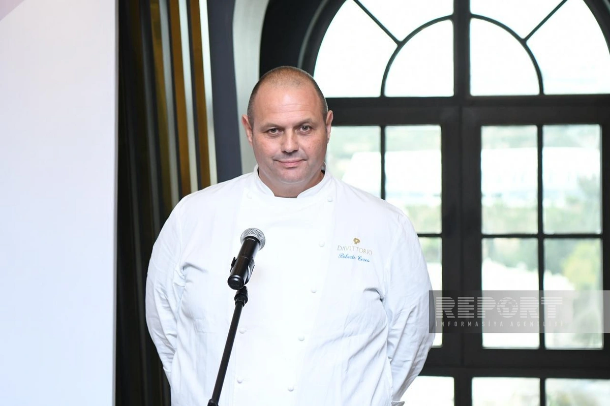 As part of the week, renowned Italian chef Roberto Cerreà from the three-Michelin-starred Da Vittorio restaurant in Bergamo was invited to Baku. During the opening ceremony, he expressed his gratitude for the opportunity to showcase Italian gastronomy in Azerbaijan.