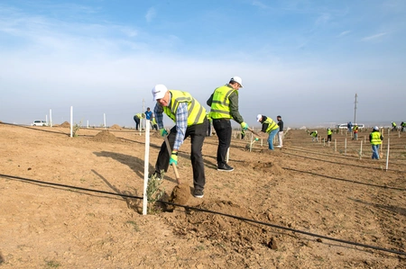Bakı–Şamaxı yolunun 30-cu kilometrliyində yaşıllaşdırma üçün ayrılmış ərazidə keçirilən aksiya çərçivəsində 1 hektar sahədə ümumilikdə 625 ədəd ağac əkilib. Ərazinin iqlim xüsusiyyətləri nəzərə alınaraq Eldar şamı və zeytun növlərindən olan tinglər seçilib, həmçinin ağacların davamlı su təminatı üçün damcı-suvarma sistemi quraşdırılıb.