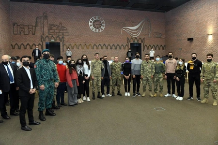O qeyd edib ki, Akademiya tərəfindən şəhid-məzunlarının adlarını əbədiləşdirmək üçün onların adlarına fəxri təqaüdlər təsis edilib və yeni istifadəyə verilmiş tədris korpusunda auditoriyalara onların adları verilib. F.Hacıyev Akademiyanın Elmi Tədris Laboratoriyasında indiyədək 78 yaralı hərbçinin Böyük Britaniyanın UCL universitetinin və Avstriyanın Complex Core şirkətinin tibbi reabilitasiyaya protokolları əsasında müalicəyə cəlb edildiyini bildirib.