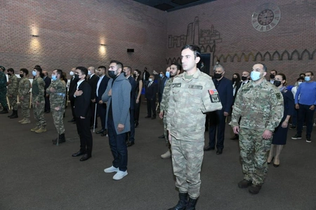 Tədbirdə çıxış edən ADBTİA-nın rektoru Fuad Hacıyev Ali Baş Komandan İlham Əliyevin rəhbərliyi altında müzəffər Ordunun torpaqları işğaldan azad etməsinin tarixə qızıl hərflərlə yazılan möhtəşəm hadisə olduğunu bildirib. Müharibənin ilk günlərindən Akademiyanın cəbhəyə dəstək olduğunu qeyd edən rektor, ali təhsil ocağının könüllü olaraq müharibəyə yollanan 75 tələbə və magistrinin düşmənə qarşı qəhrəmancasına vuruşduğunu qeyd edərək, Vətən uğrunda canlarından keçən şəhidlərdən 13-nün ADBTİA-nın məzunu olduğu bildirib.