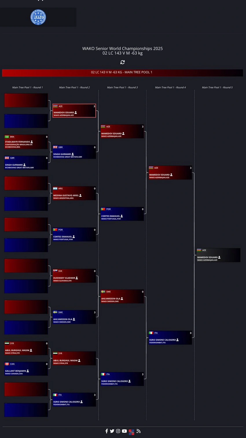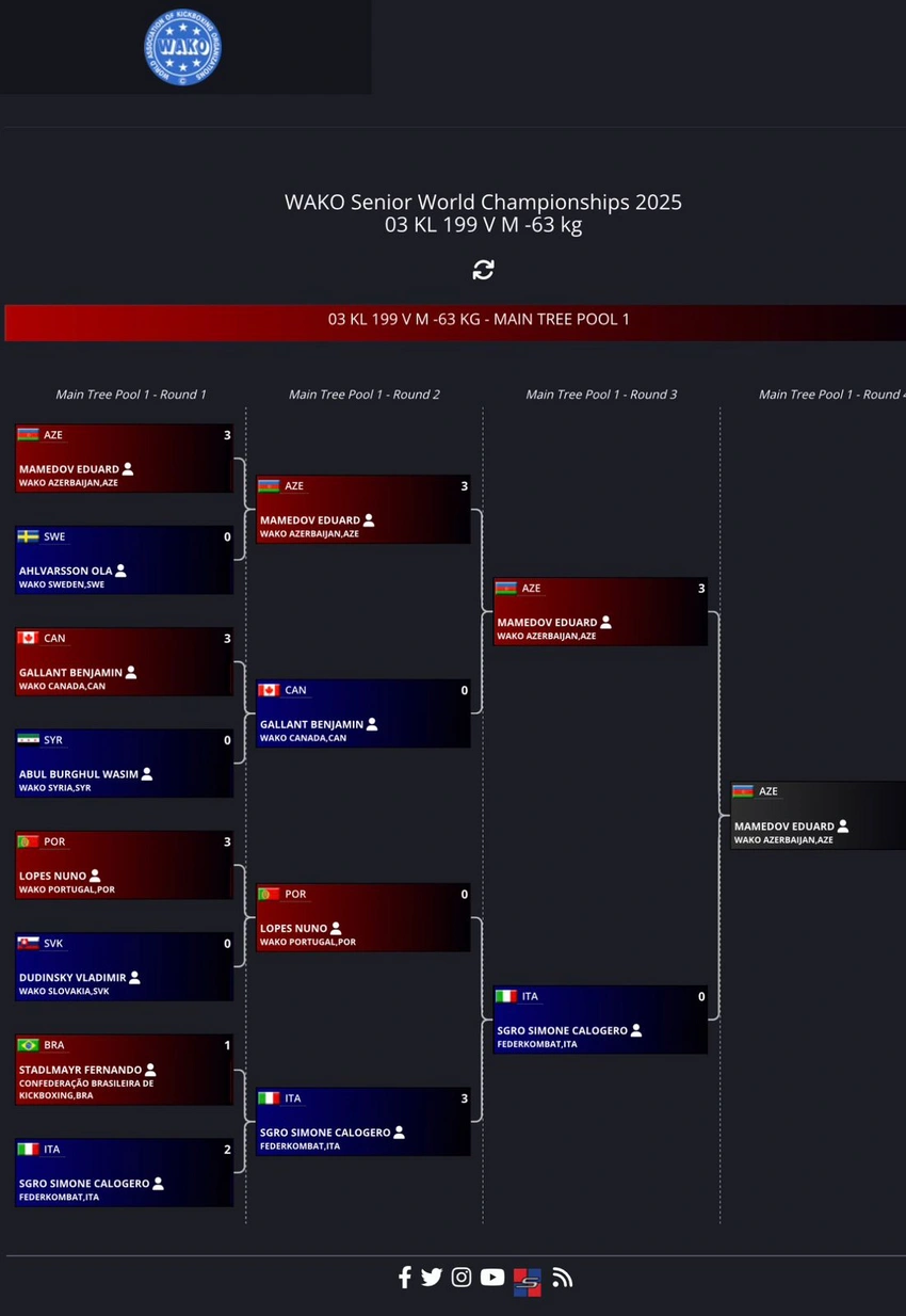 "Report" xəbər verir ki, "Master Class" kateqoriyasında 63 kq çəki dərəcəsində kikboksinqin "Light Contact" və "Kick Light" növlərində çıxış edən E.Məmmədov hər iki versiya üzrə qızıl medal qazanıb.
