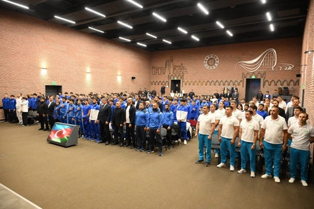 Fərid Qayıbov ötən ay beynəlxalq yarışlarda yüksək nəticələr əldə etmiş idmançılarla görüşüb
