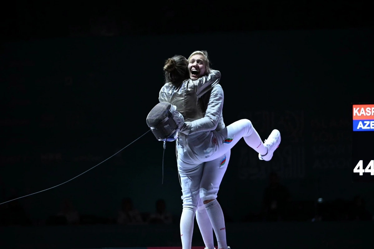 "Report" xəbər verir ki, qılıncoynatma yarışlarının son günündə yarımfinal görüşündə Türkiyə millisinə 45:32 hesabı ilə qalib gələn Zərifə Hüseynova, Səbinə Kərimova və Palina Kaspiaroviçdən ibarət komanda finala yüksəlib.