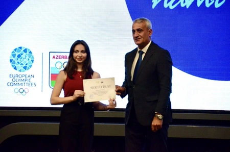 Azərbaycan İdman Akademiyasının akt zalında Milli Olimpiya Komitəsinin (MOK) həyata keçirdiyi "Təhlükəsiz idman - hamı üçün" mövzusunda kursların iştirakçılarına sertifikatlar təqdim olunub.