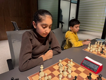 Yarışdan əvvəl millinin üzvləri Məhəmməd Muradlı və Ayan Allahverdiyeva gənc şahmatçılarla təcrübəsini bölüşüblər.
