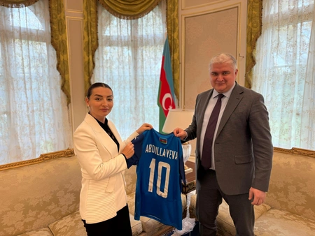 Görüş zamanı səfirə Azərbaycan milli komandasının forması hədiyyə olunub.