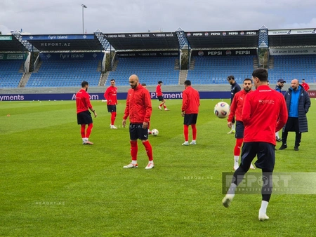 Azərbaycan milli komandası İslandiya ilə sabahkı oyun ərəfəsində Reykyavik şəhərindəki "Lauqardalsvöllur"da son məşqinə çıxıb.