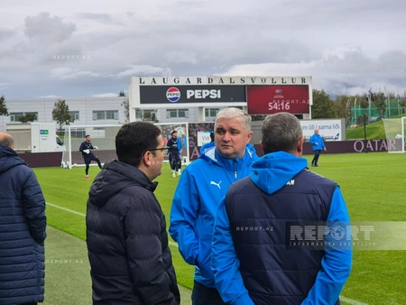 "Report"un İslandiyaya ezam olunan əməkdaşı xəbər verir ki, yerli vaxtla 18:30-da başlayan məşqin ilk 15 dəqiqəsi mətbuat üçün açıq olub.