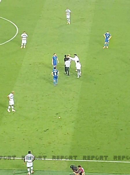 "Report"un məlumatına görə, görüşün sonlarına yaxın meydançaya bir neçə azarkeş daxil olub.